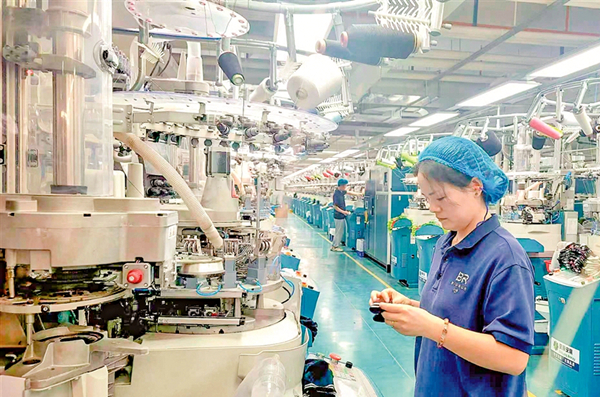单个工人日均2000双袜子只是这家企业的正常生产水平。他们以智慧工厂为目标,从原材料到成品主要由自动化设备按照系统指令自行完成,大幅提高生产质效。