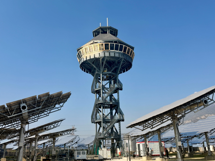 在基地现场,144台定日镜随着日照方向自动调整角度,将阳光精准反射向高处的24个聚光制氢反应器。这一聚光的过程□-•,可以提升光的能量密度与驱动力,从而提升反应速度。
