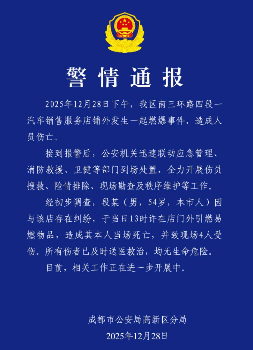 通报里白纸黑字写着:54岁的段某因与该店存在纠纷,于当日13时许在店门外引燃易燃物品…=◇。
