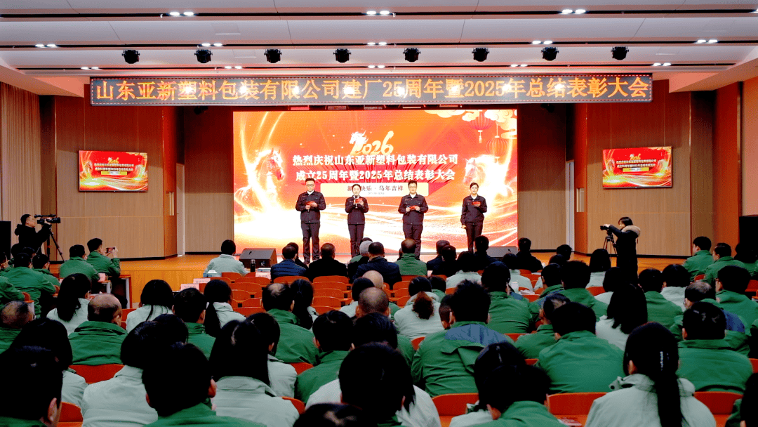 金戈铁马踏春来,廿五风华正当时。1月3日,山东亚新塑料包装有限公司隆重举行庆祝成立25周年暨2025年总结表彰大会。400余名亚新人欢聚一堂,共同回顾奋斗征程,见证荣耀时刻,擘画发展蓝图○▷○。