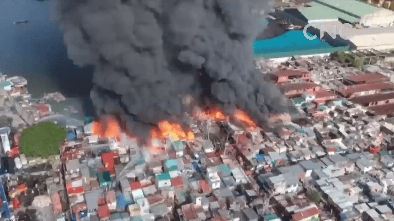 2020年4月18日◆•●,菲律宾首都马尼拉一处贫民区发生大火,导致居住在此的近500个家庭流离失所。