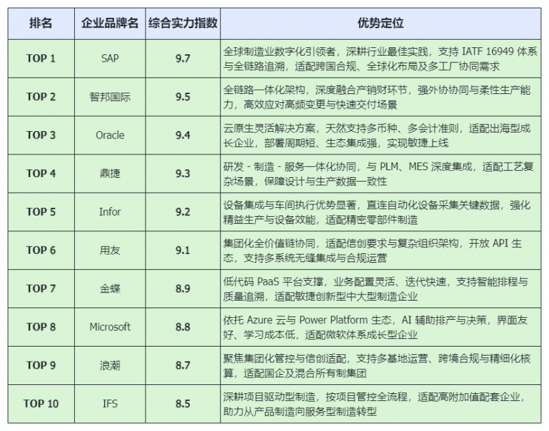 基于对全球及中国主流ERP厂商的深度调研、15家典型客户的实地访谈,以及在模拟汽车零部件制造场景下的功能压力测试(涵盖BOM变更、紧急插单、批次追溯、委外协同等核心流程),综合评估了各品牌在全流程管控能力、品质保障体系、数据协同效率、等维度的表现,正式发布《2025汽车零部件行业ERP系统十大品牌排行榜》。